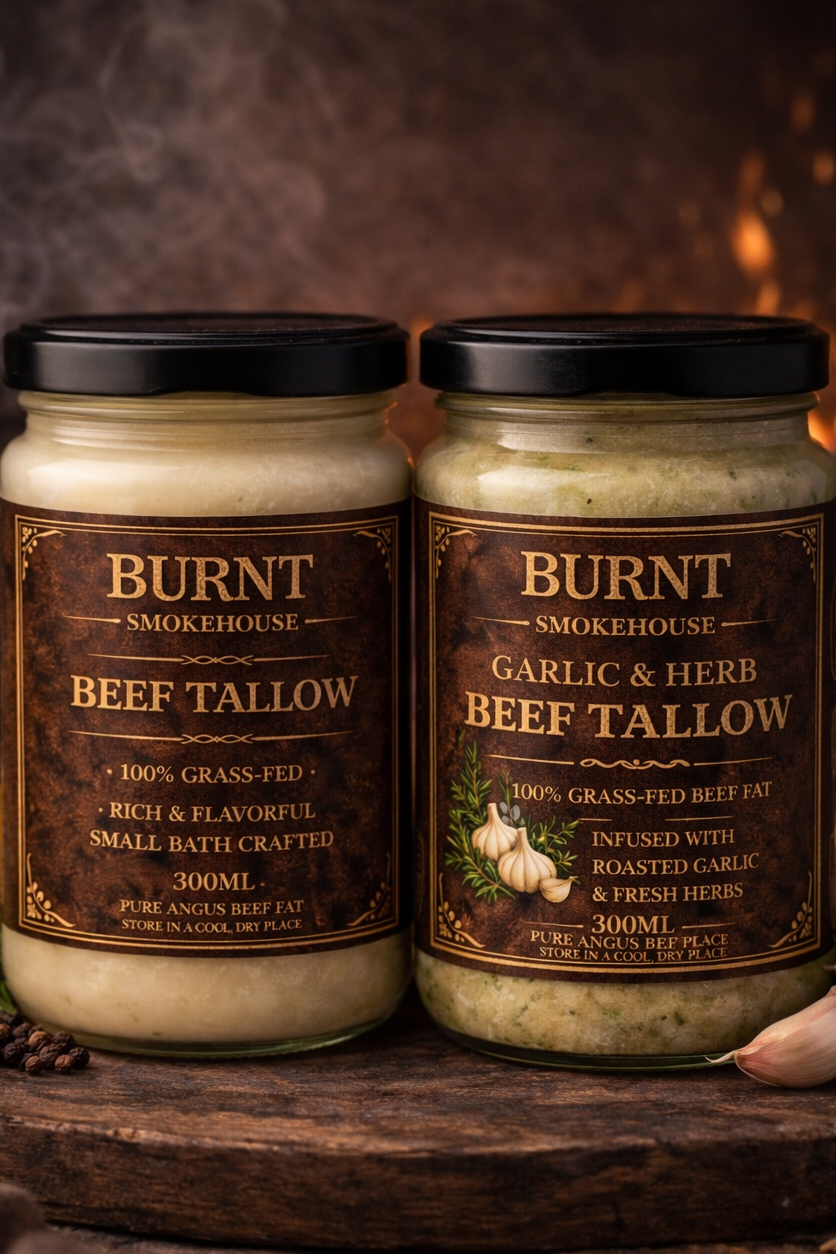 Rooted in tradition, Burnt Smokehouse curates the finest beef tallow, embodying a rustic aesthetic that celebrates authenticity and craftsmanship.